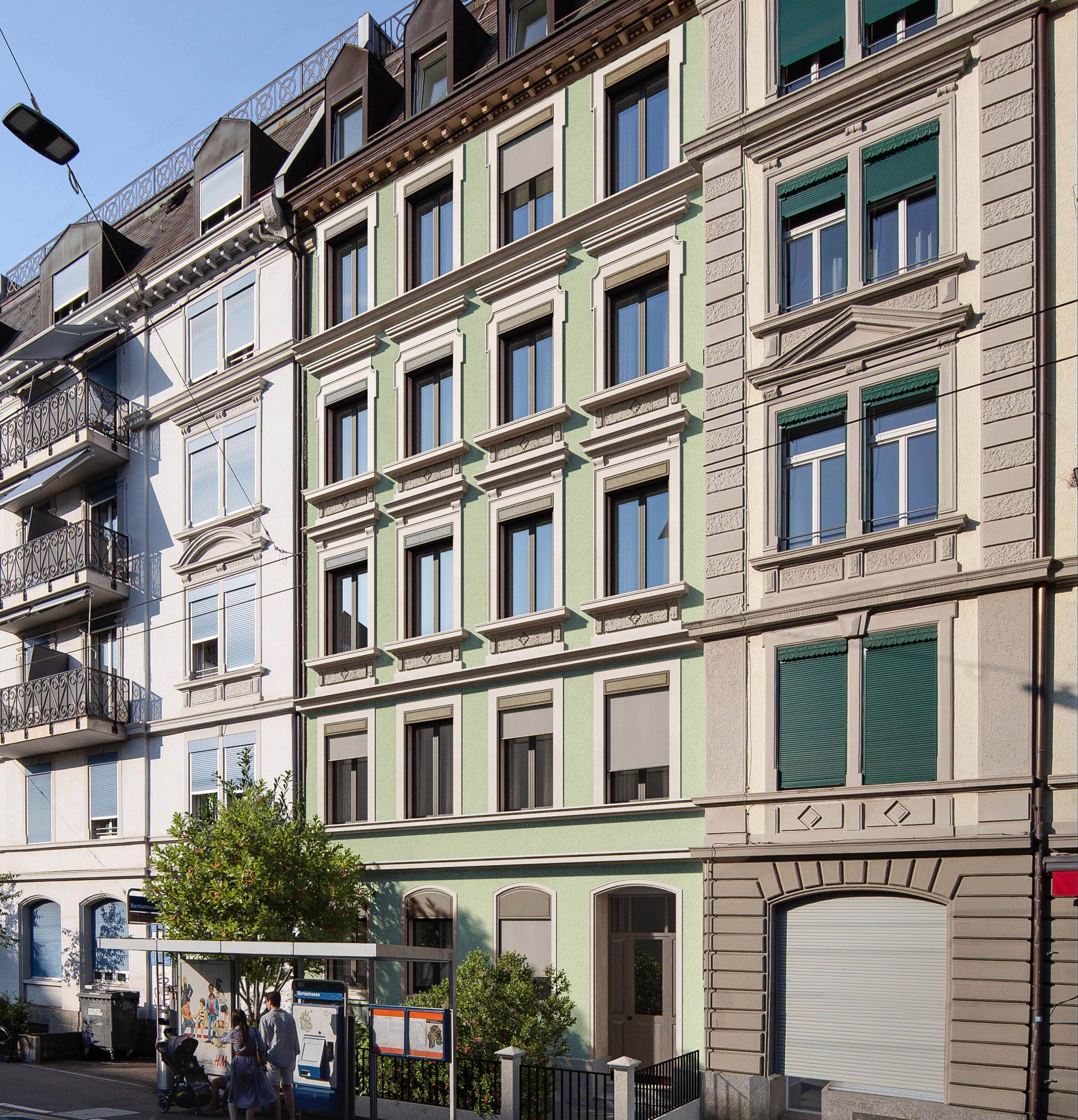 Der Zürcher Kreis 3 gehört zu den begehrtesten Lagen der Stadt. In einem Altbau mit Charme entstehen an der Ämtlerstrasse Eigentumswohnungen im gehobenen Segment. Eingebettet ins pulsierende Zürich, sind sie Rückzugsorte für Menschen mit hohen Ansprüchen. Mit viel Gespür für die Historie des Gebäudes und der Umgebung wurden der Um- und Ausbau geplant und umgesetzt.